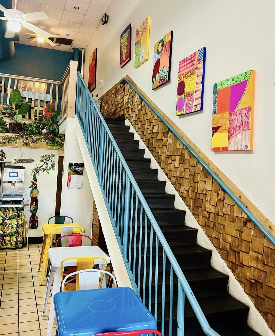 Sue’s work is combined with empowering brilliant colors and daring geometric shapes placed in unique arrangements that create unique dimensions. Each shape is designed to create a symbol to express a point or explanation.